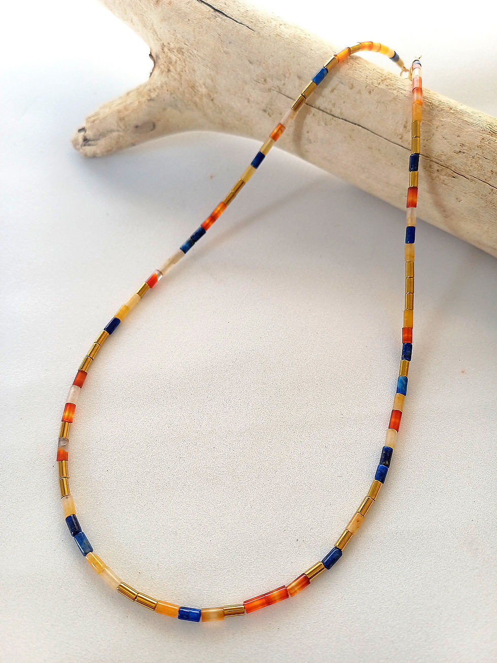 Sautoir, chaîne ou collier de pierres fines sur base argent, laiton ou acier inoxydable doré à l'or fin…